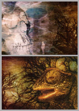 Oben: Die vier doppelseitigen Farbcollagen zu "Wiedergänger", geschaffen von Stavros Dilios. Zum Vergrößern Illustrationen anklicken. (Noch nicht aktiv!)